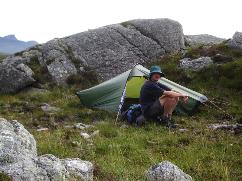 Imagine the delight, you’ve found a spot on the top of a hill. A big round hill just over from the trig point, taking shelter offered by some low gorse. You made it up there around 5.30-6.00. It’s been a day full of weather, clouds lumbering over threatening rain and delivering around lunch time. Waiting it out in a saturated hay barn through a long heavy shower that sat on top for over an hour. Streams running out through tractor ruts, changing the colour of the day but moving away to allow the grass to dry by late afternoon. So on top of this hill, 423 meters, sun in and out of towering storm clouds. Round grassy hills and lumpy mountains in all directions. Big views. Yeah! Clear air. Hill sides lit up in late sunshine. Tent up super-duper organised and into warm evening gear. Exploring and gazing about and standing on top of the trig point for singing and dancing, stretch and shake, loosen up tight shoulders, breath and celebrate, proclaiming your territory, Saturday night no one else around, all yours. Chilly wind though and possibly more rain coming up from the south east. It’s currently dumping on that there lumpy mountain you walked over the day before yesterday. Weather coming your way so action. You need to get cooking, get on with it before it arrives. Into the food bags and the stove, pots and pans and chopping and frying; concentrate with a job to do. Half an hour and there you are, sitting with a mug of fennel tea and big (waiting to cool) pot of Cheesy Chilly Chorizo and Apricot Pollenta De-lux. Sitting with sunset and rainbow and yeah. Another half an hour it’s raining but you’re well fed and super-duper organised inside the tent. Washing up done even. (Grassy mossy hand-full, very nice scourer). And the realisation dawns: Yup. This is why you came
