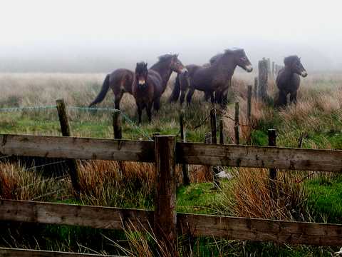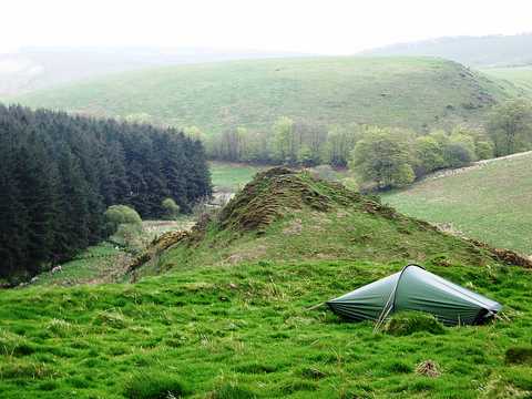 Diary entry. Friday 6 May. 11am Still here. Cow Castle, destination from yesterday. Spotted on the map in my Barnstaple BnB and I’ll head for there and delighted I did it and that the extra weight wasn’t driving me into the ground. Along with a bounce and a spring. Up out of Barnstaple along sunny roads twisting into Devon hills. Through Gun and lunch in Brayford, brewing up soup by the river. Happy even with the roads. “I can do this yeah” and in fact I’m doing it. Then Exmoor after lunch and into the fog. Up onto wide flat pasture, compass out for the first time and due east with about 20 yards visibility across a couple of miles of marshy wildness, first little bit of this, sensational, with a heard of shaggy wild little ponies. Late afternoon out of the fog and down between round hills to Cow Castle; ancient track through Aslan country to a sacred place. Very struck by the form of the hills, smooth and round beneath neutral grey skies with lines of budding beach to set it off. Perfect laid hedges, well looked after countryside. Here now, lump of round hill at the confluence of 2 rivers. Valleys winding in to the focus of Cow Castle. Hey and just earlier an Osprey soaring and flipflopping out of a plantation over there above the stream. Migrating in it must be, on it’s way to a watery summer spot. There we are again, the summer all ahead.