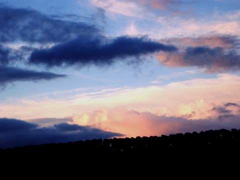 Saturday 2 July. Getting going again after a break; hard going just like down in Wales. Thing about being rested, 5 days off to rest legs and feet and recharge, should be sproing but it all seems harder, legs heavy and pack squeezing me out. Perhaps it’s just about having forgotten how hard it is and having to re-acquaint with that. Got to build momentum again, re-absorb into the landscape and get ready to catch the next wave. Anyway, out in a more wild thing today. Seen nobody all day except for a few cars as I crossed the A702 this afternoon at Overfingland; the Roman Road north across these here hills. Over and down to Daer Reservoir. Getting the hang of this wide open Scotland, big and empty, around here anyway. Rows of towering round hills with their tops in and out of the clouds. Pretty wild weather today actually. Wind building through the afternoon, rain off and on, lifted now but tent flapping like mad. Decided around 5 to find a spot down in the valley below Cold Moss instead of going up to camp on Lowther Hill, my original plan but silly in this weather. Frustrating but a good idea I think also for energy levels. Dark patches of heather in streaks and squares vivid against the grass on the hillside opposite, right pretty and hares running back and forth and boxing. Listening to the Live 8 concert out here. Compelling and moving, Sir Bob and all that positive energy somewhere very else. Though somehow feeling part of it, walking to kiss the planet. Will I wait up till The Who and Pink Floyd? Way past my bed (bag and mat) time. Chaffinches. Came through a clump of plantation today that was just alive and full up with Chaffinches. I walked out away from it and the cheerful chattering pursued me down the hill and in fact has been pursuing me through woods and along hedges all the way up from Land’s End, the noisiest and it seems to me most ubiquitous bird in the land or actually only one or a pair that has been following me the whole way with important news that I just don’t listen to but they wont give up. The soundtrack actually of this walking along with larks and of course rooks early morning and evening coming in to find me and roost up. The Boy with the Imaginary Rookery; all alone on the hills and finding friends.