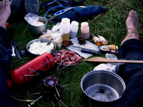 Oban. Plan to spend the whole day just crossing and setting up in the camp site at Craignure. But raining at the moment so I’ll spend the morning in the Youth Hostel, no rush. Thinking about the next stage; here to Mallaig. Looking at the route, pouring over the maps I picked up at the Post Office yesterday. Excited looking forward to this, what lies ahead? Package number 7. (3 to go!) Thinking it’s going to take a week to Mallaig. Winding round the hills, big hills and lochs. Back and forth jagged coastline. Ardnamurchan! Does such a place exist? The thing about roads again, working out a balance between roads and paths. I want to be up in the wild country but finding it has to be on paths. Perhaps just short linking jumps across open ground. I can only guess looking at the map how difficult it might be, how heavy going. Still haunted by that evening (just last week!), floundering in the bogs and swamped by the Kintyre tussocks. 2 or 3 days on Mull. Looking at just one jump of about 3 miles between forestry tracks heading up through Glen Forsa below Beinn Bheag. There are some dense contours there. Planning to go through Glen Forsa and down to near Salen, perhaps camp on the coast there. Then up along the west side of Loch Frisa and round into Tobermory. Ferry back to mainland at Kilchoan then wiggle back and forth round lochs and mountains up to Mallaig. All I have is the map and some kind of motivation to get across it. Pack again up to full weight with a weeks food. I think I’ve decided now to settle for Cape Wrath. Make that my destination and let go of John-o-Groats. I’ve run out of time to do that now without really pushing it (by my standards). To push it and struggle would be unpleasant and not why I’m out here so; I have 4 weeks odd to wander up the west coast, enjoy it and relax. I can stay for a few days with J and J before the final assault north from Ullapool. To wander through this country can seem at one moment wondrous and romantic and mythical adventure quest and the next…. an outrageous what am I thinking frightening prospect. Maybe can’t have one without the other. Well embedded in Scotland now. Gretna day 64. 22 days ago, always been here. England and all those down south miles. Where are they? And where are all the massages I was planning in getting along the way? I tried in Hay On Wye, lady all booked up, Liverpool the same and no reply from a number on a card I was given at the Oban Natural Health Centre. Just the thought of having aching muscles pummelled but it looks like I’ll be going without. |